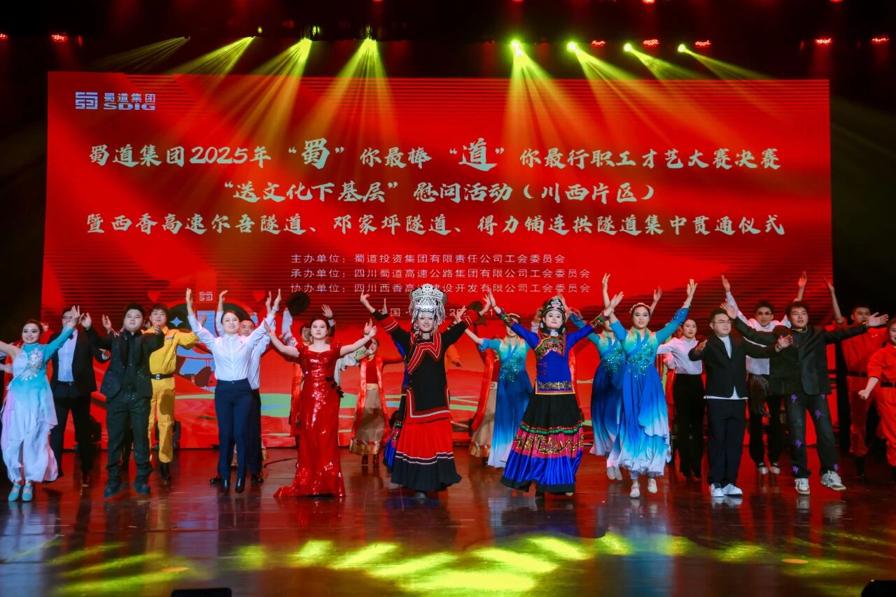 1月15日,williamhill官网2025年“蜀”你最棒 “道”你最行职工才艺大赛决赛“送文化下基层”慰问活动(川西片区)暨西香高速尔吾隧道、邓家坪隧道、得力铺连拱隧道集中贯通仪式成功举行。williamhill官网工会副主席、工会办公室主任赵明,williamhill官网党委委员、职工董事、工会主席唐新林出席活动。