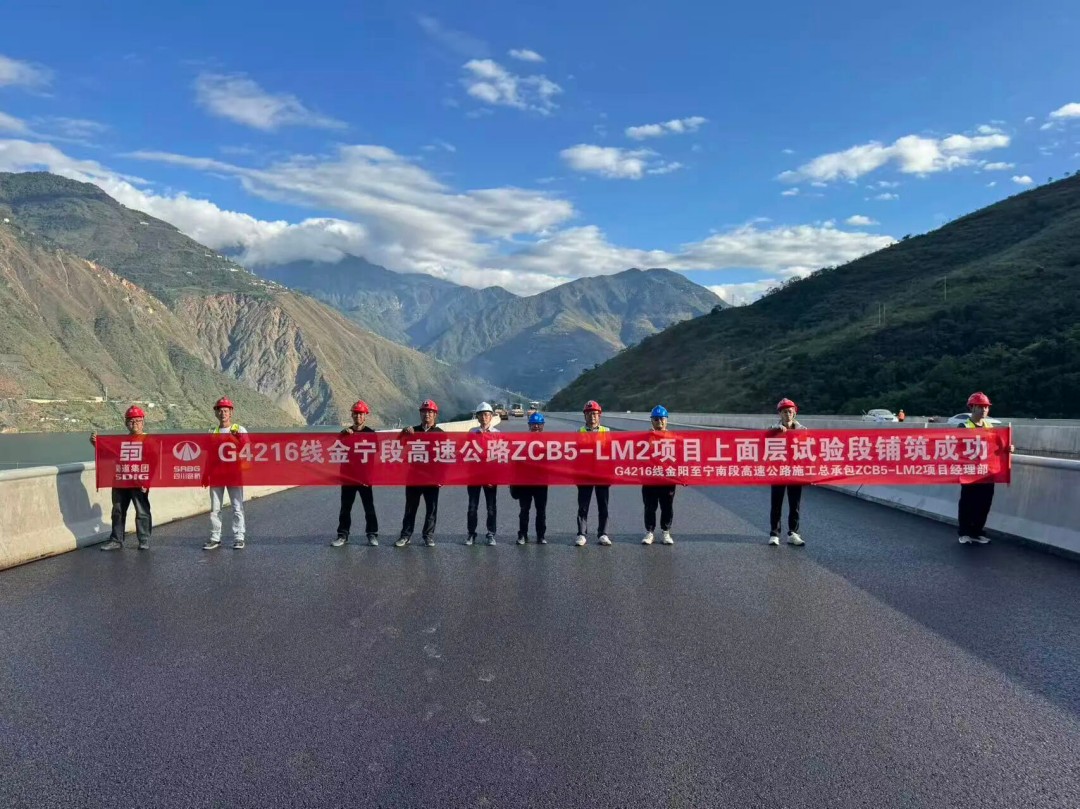 11月4日,宜攀高速金宁段ZCB5-LM2项目顺利完成改性沥青混凝土上面层试验段铺筑,标志着项目路面结构层施工迈入崭新阶段。