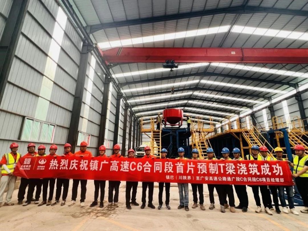 5月11日,随着最后一方混凝土入模,镇广高速C6项目山区高速标准化智慧梁场的首片预制T梁顺利浇筑完成,标志着镇广高速首个山区高速标准化智慧梁场顺利投产,为C6项目桥梁上部构造施工拉开了序幕。