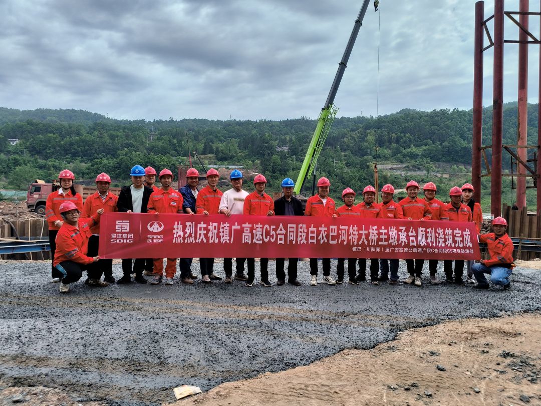 5月1日上午10时,镇广高速通广段C5项目的控制性工程——白衣巴河特大桥9#左、右幅承台完成浇筑,标志着项目又一关键工程节点圆满完成。