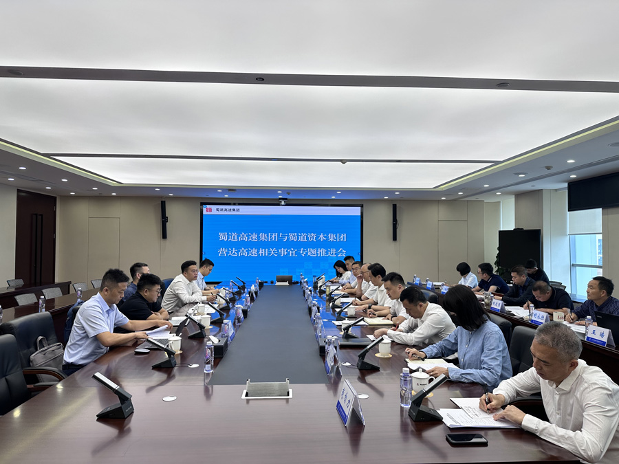 6月5日,williamhill官网党委副书记、副董事长、总经理肖波与蜀道资本集团党委副书记、副董事长、总经理宋雪飞及蜀道资本集团所属公司蜀道创投公司党总支书记、董事长、总经理李雨翔就营达高速过渡期管理、交割前准备工作及存在的相关问题等方面深入交换了意见。williamhill官网党委委员、副总经理郑伟主持会议。