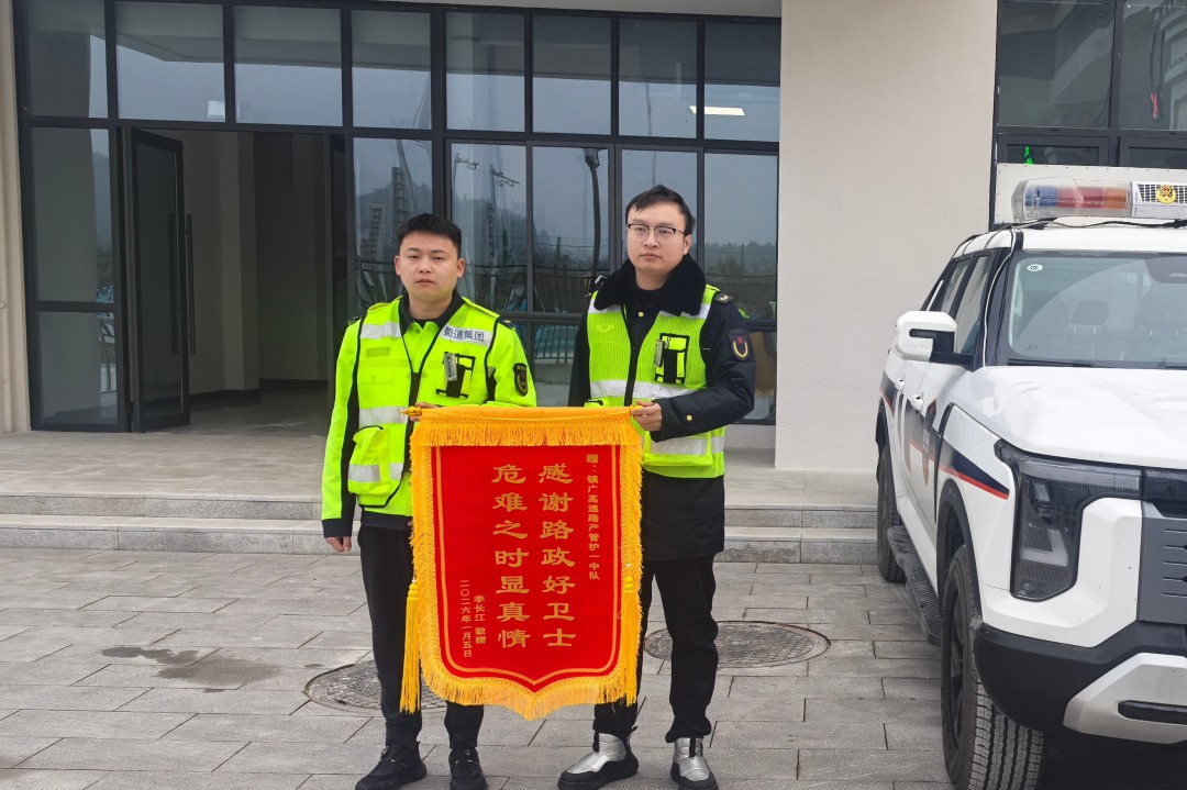 1月6日,镇广高速渠县管理中心路产管护一中队接到一通陌生来电,随后一面写有“感谢路政好卫士 危难之时显真情”的鲜红锦旗被送到了队员们手中。而这,已经是该路段开通运行仅仅10天内收到的第2面致谢锦旗。