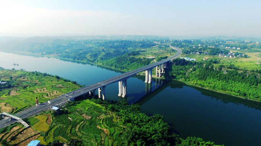 广安市过境高速公路东环线及渝广支线为跨越华蓥市规划区而设置,桥梁全长912m,最大桥高25m,桥梁上部结构为分幅式,采用3x30+6x(4x30)+3x30m先简直后连续预应力砼T梁,单幅车行道宽11.5m。