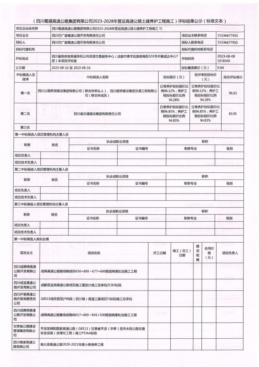 (williamhill官网2023-2028年营运高速公路土建养护工程施工)评标结果公示(标准文本)