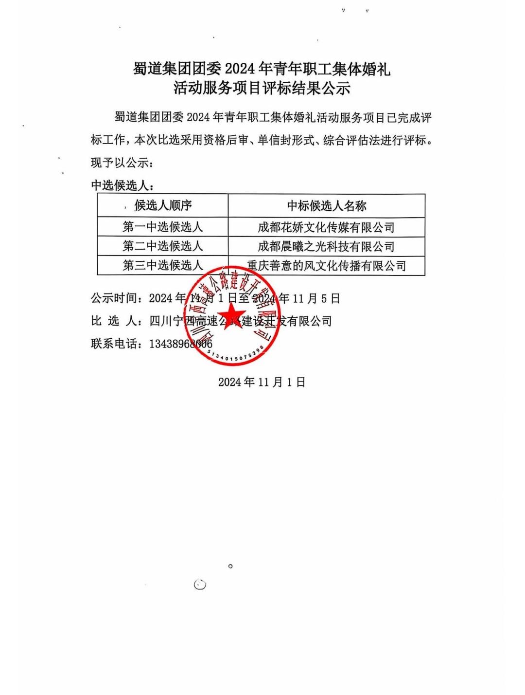 williamhill官网团委2024年青年职工集体婚礼活动服务项目比选结果公示