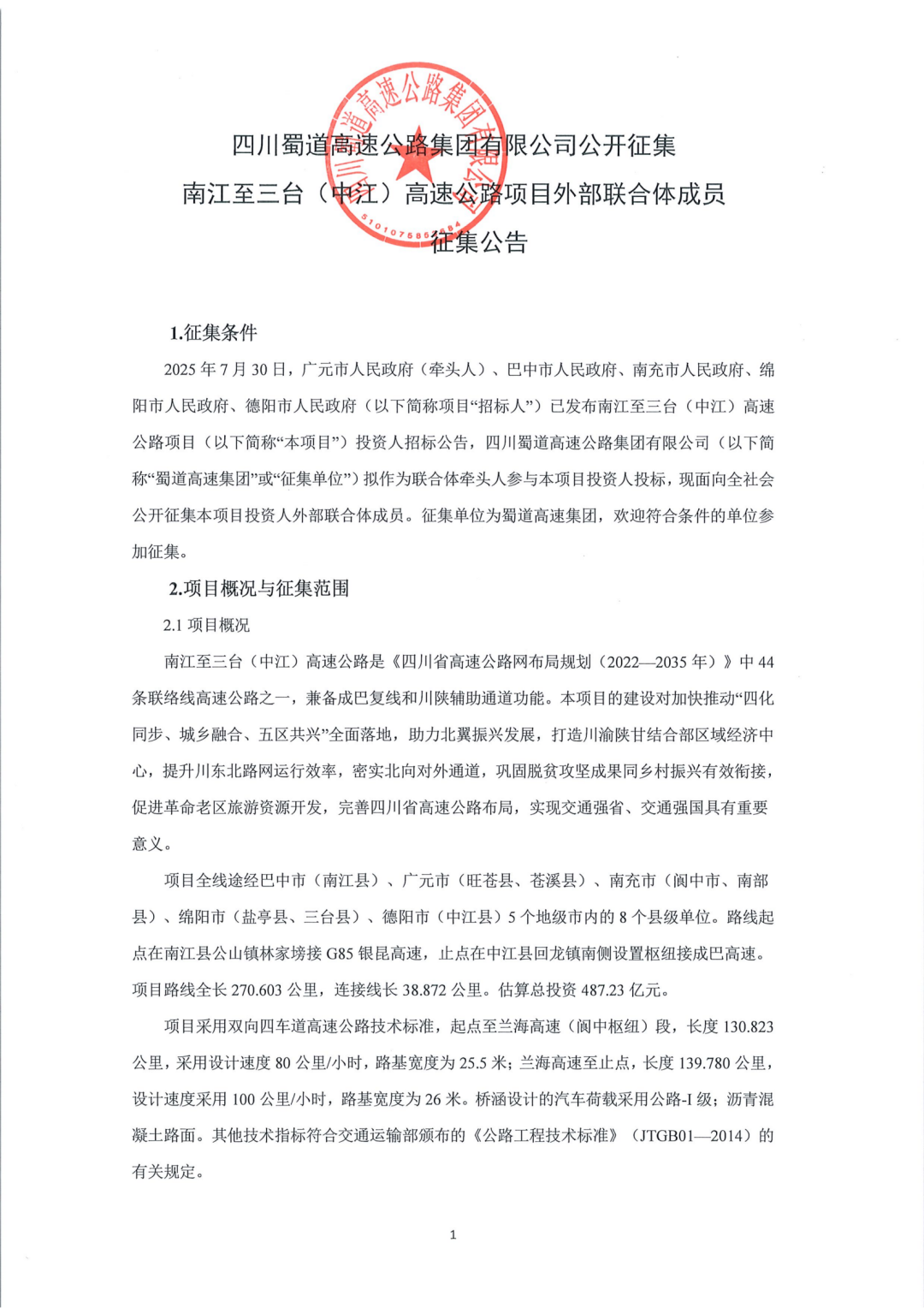 williamhill官网公开征集南江至三台(中江)高速公路项目外部联合体成员征集公告.pdf