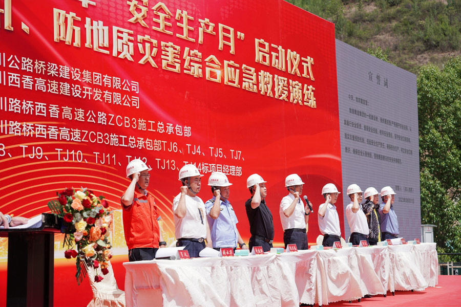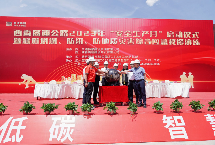 6月1日,西香公司联合四川路桥集团在西香高速 ZCB3总包部TJ6 标盐源隧道出口端开展西香高速公路2023年“安全生产月”活动启动仪式,本次活动采用“现场活动+视频直播”的方式开展。西香公司党委副书记、董事、总经理雷良,四川路桥集团党委委员、监事会主席黄卫出席并讲话;西香公司党委委员、副总经理陈显福,西香公司党委委员、纪委书记黄志勇,盐源县应急管理局、自然资源局、润盐镇、西香高速专班有关领导出席活动。