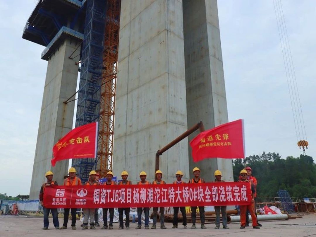 杨柳滩沱江特大桥全长906米,双向6车道标准,主桥采用(98m+180m+98m)连续刚构形式,设计防洪标准为300年一遇,为铜资高速全线控制性工程。杨柳滩沱江特大桥0#块位于主墩墩顶,是墩顶的向中、边跨延伸的重要部位,是连续梁施工的关键性节点。为保障0#块浇筑工作的顺利完成,乐资铜公司统筹谋划,多措并举,多次召开专题浇筑会议与安全技术交底会,提前制定浇筑计划,在技术服务、后勤保障、安全质量控制、工序衔接等方面进行了详细分工,压实担子、责任到人。项目采用了托架法施工工艺,并利用混凝土泵车进行泵送入模,以确保施工质量和进度。施工过程中严格按照设计要求和工艺流程进行操作,保障了工程质量及安全可靠性。