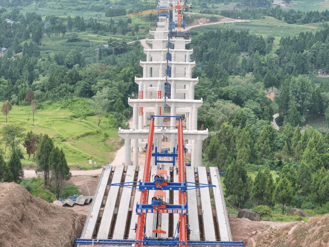 为确保首片预制T梁成功架设,各参建单位高度重视,严格按照施工方案组织实施。项目部提前做好专项施工方案的编制及评审,组织相关人员进行方案交底。在施工过程中,对架桥机的拼装、过孔、吊装、T梁运输等关键工序进行了严格把关,技术人员全程跟班作业,严格做好技术、安全管理,确保整个T梁架设过程安全、规范。C8项目全线预制梁板任务共计1374片,其中20米T梁58片、25米T梁1026片、40米T梁290片。