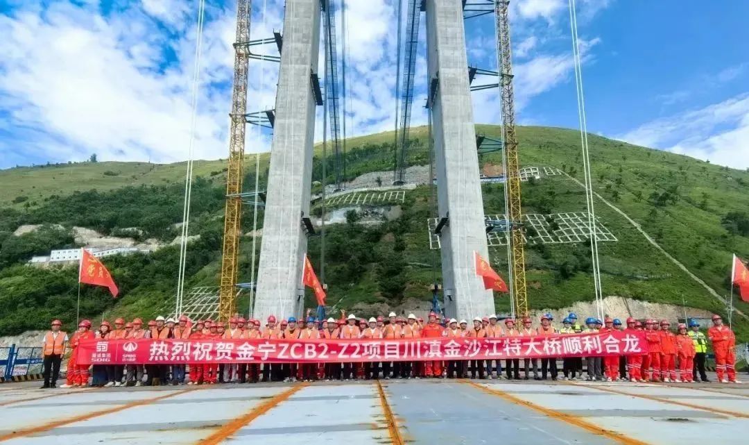 川滇金沙江特大桥为G4216线宜攀高速控制性工程,主跨1060米单跨双塔钢桁梁悬索桥,地处高地震烈度区(Ⅷ度),是世界第一座同时跨越超复杂风场、超高地震烈度带以及深水库区的千米级钢桁梁悬索桥。大桥飞跨川、滇两省,两座索塔分别位于四川省宁南县和云南省巧家县,主桥横跨世界第二大水电站白鹤滩水电站库区,是四川通向云南的重点在建工程项目。