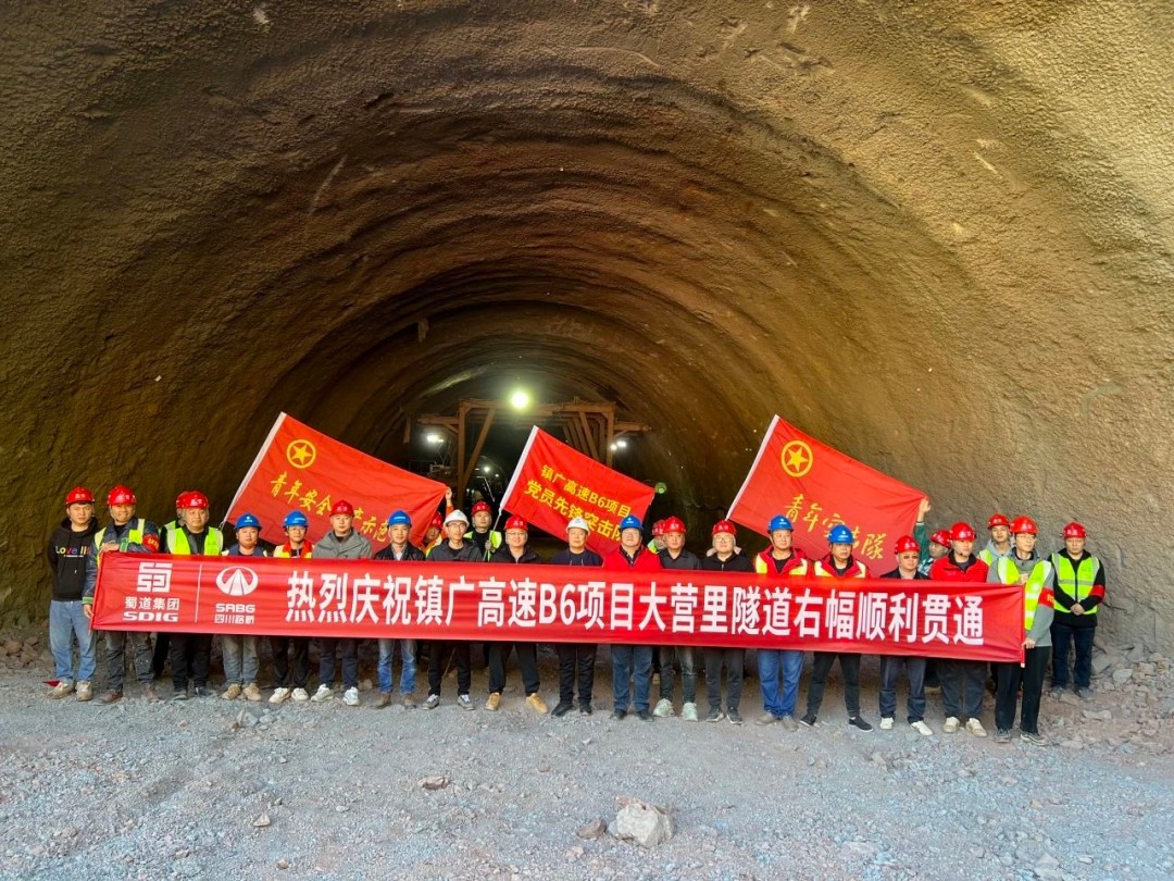 11月20日,镇广高速川王段B6项目大营里隧道右洞顺利贯通,为项目圆满完成年度目标奠定坚实基础。