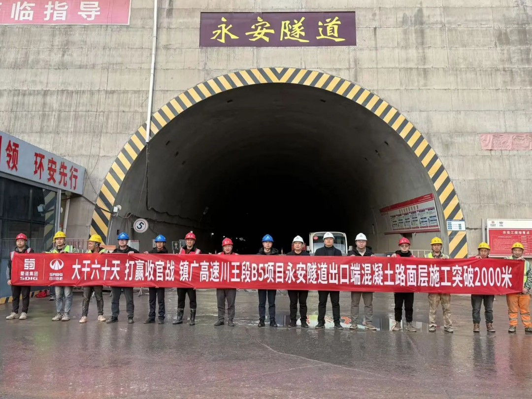 12月25日,镇广高速川王段B5项目永安隧道出口端混凝土路面层施工突破2000米,标志着隧道施工进入崭新阶段。