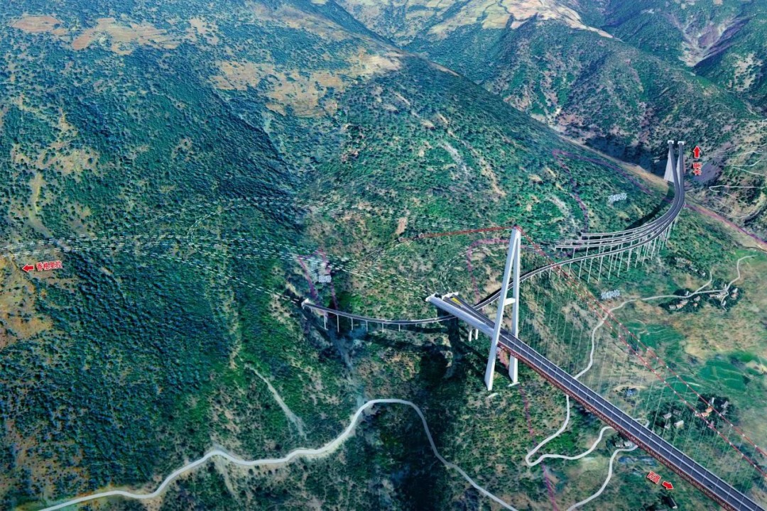 元宝枢纽地下互通进口端接泸沽湖特大桥,上方为U型隧道锚,主线、匝道隧道与隧道锚形成三层地下空间架构,为超大规模地下空间综合体。具有“一最(全国最大规模山区高速公路全地下互通)、二多(隧道结构类型多、开挖方式多)、三高(高海拔、高落差、高地震烈度)、四特殊(上下‘0’净距交叠特殊结构、空间变异连拱特殊结构、超大断面特殊结构、极小净距特殊结构)、五极其(地形极其复杂、地质条件极其复杂、气候极其极端、生态极其脆弱、建设条件极其困难)”的工程建设特点。本次元宝隧道进口端左洞进洞即面临浅埋偏压不良地质、洞口松散堆积体覆盖层、大断面(235.8㎡)特殊结构、与泸沽湖特大桥存在施工交叉干扰等困难导致现场施工组织难度极大。