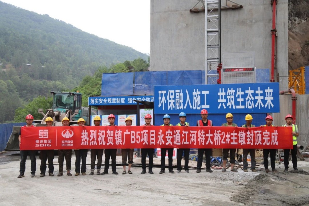 5月26日,镇广高速川王段B5项目永安通江河特大桥2#主墩(左右线)顺利完成封顶,标志着项目桥梁正式进入上部结构施工阶段。