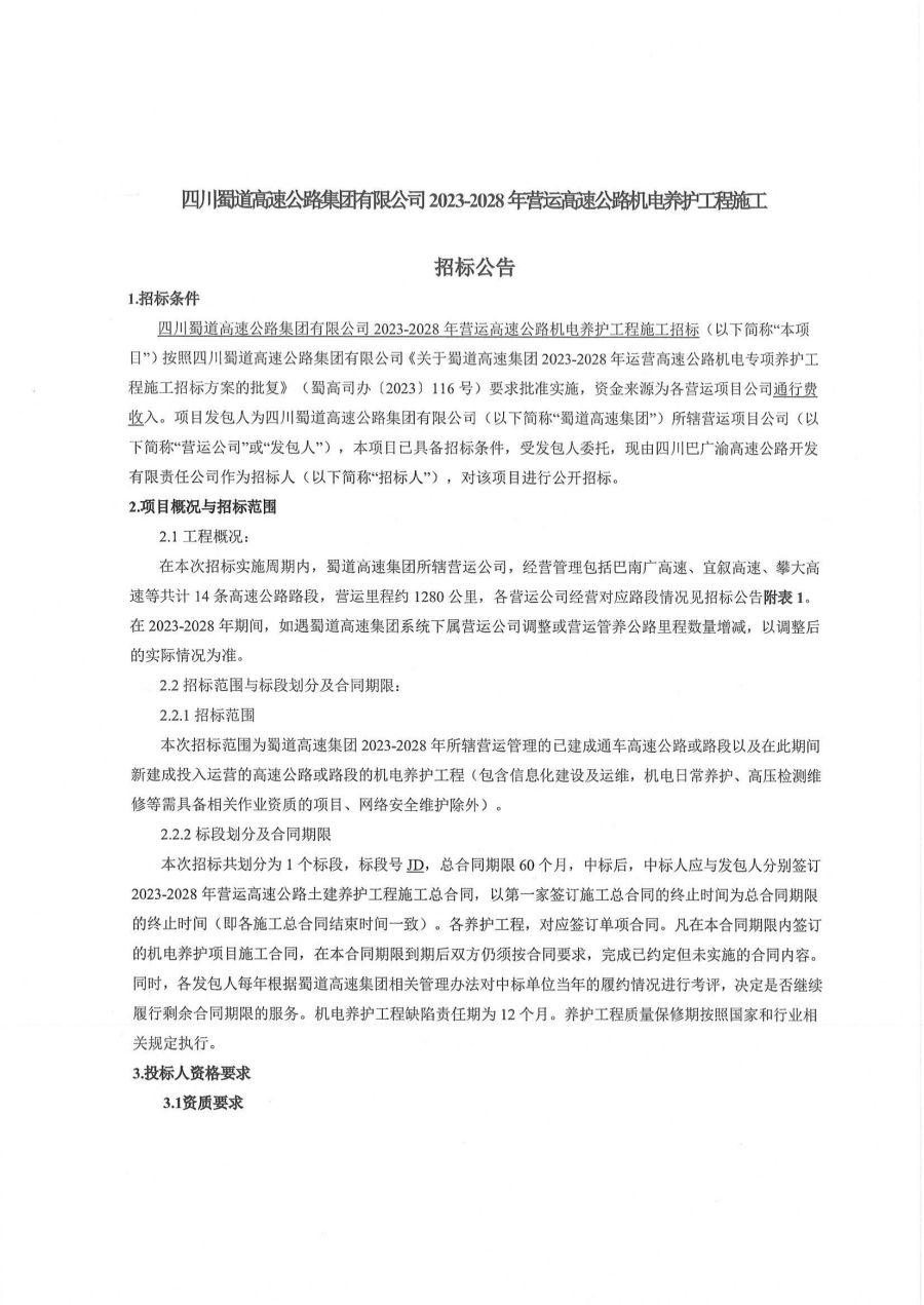 附件:williamhill官网2023-2028年运营高速公路机电专项养护工程施工招标文件.pdf