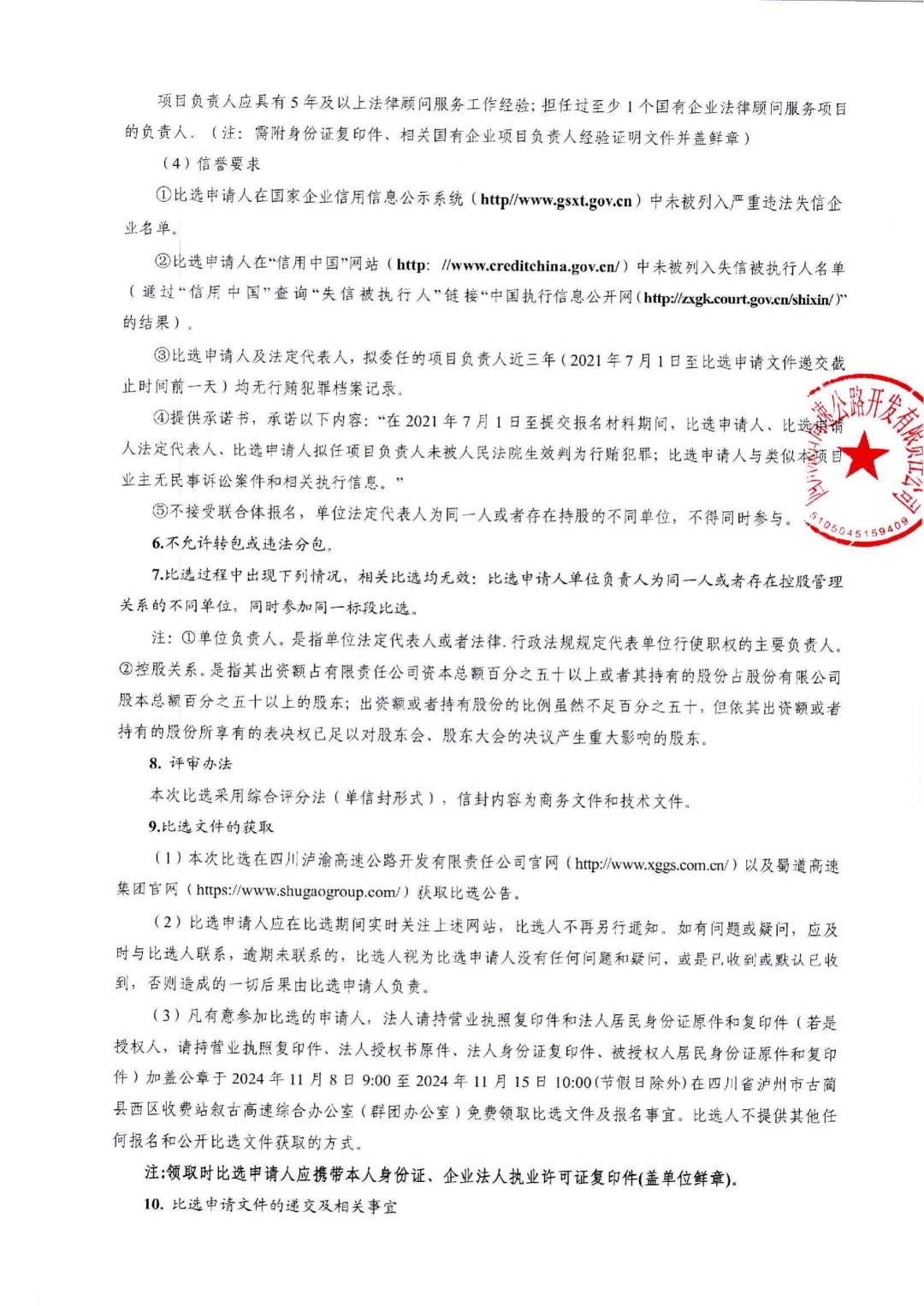 叙古叙威川黔公司聘请法律顾问项目比选公告
